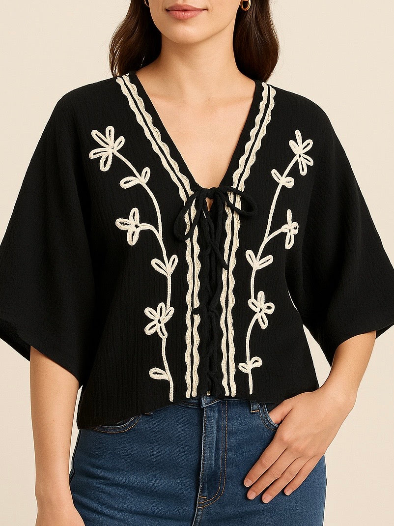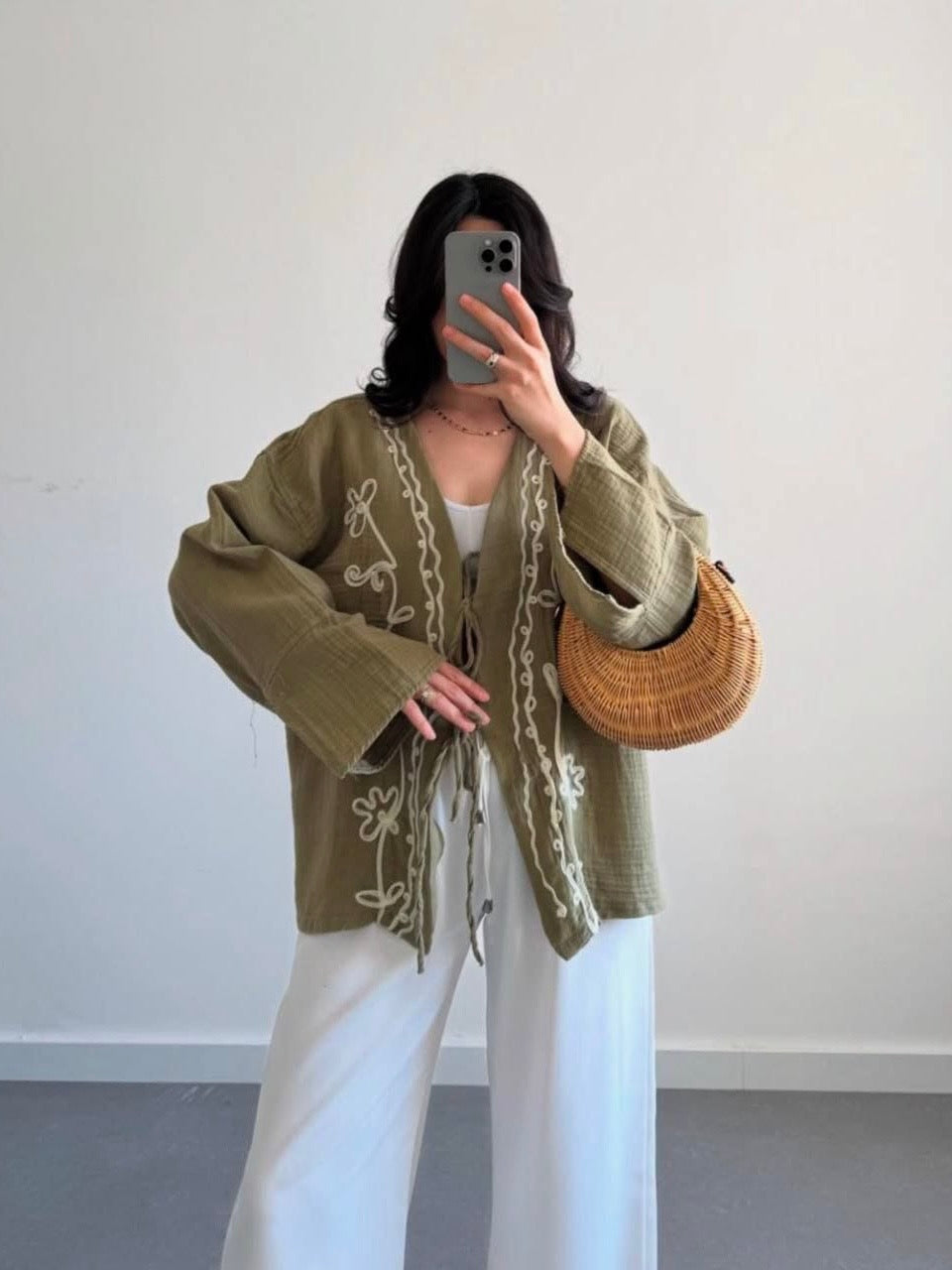 A beautifully embroidered Turkish blouse that adds a refined touch to your casual or semi-formal outings. Stylish, yet soft and feminine.